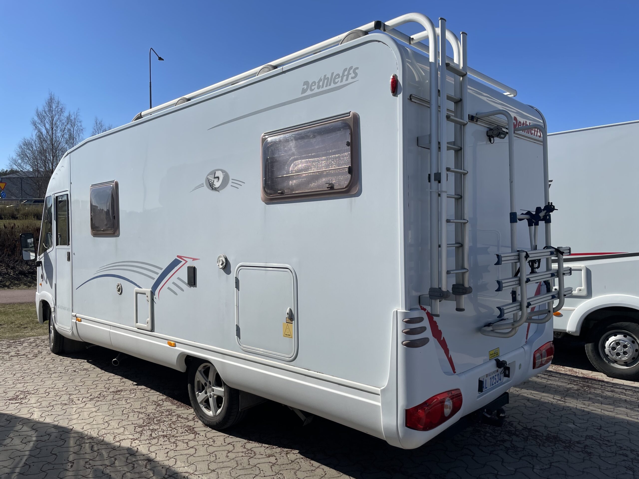 | Övrigt | Cykelställ, Dubbelsäng, Eltrappa, Fukttestad, Golvvärme el, Kyl med frysfack, Längd 6,75, Leveranskostnad 200€ tillkommer, Markis, Reg. för 4 personer, Stödben, Stort garage, Svängbara framstolar, Taksäng, Toalett/Dusch, Totalvikt 3495kg, Trumavärmare |